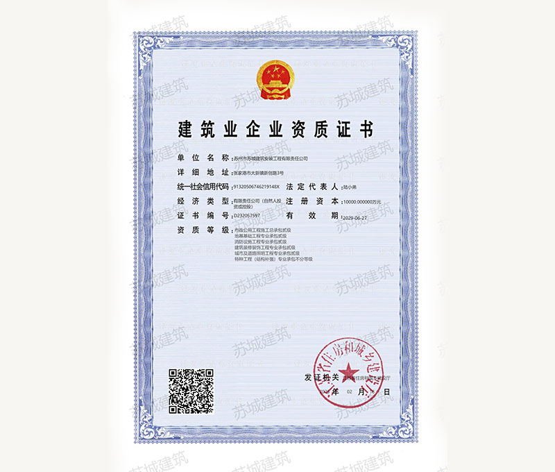 蘇州市蘇城建筑安裝工程有限責任公司是一家建筑業(yè)企業(yè),擁有房屋建筑施工總承包一級資質(zhì),